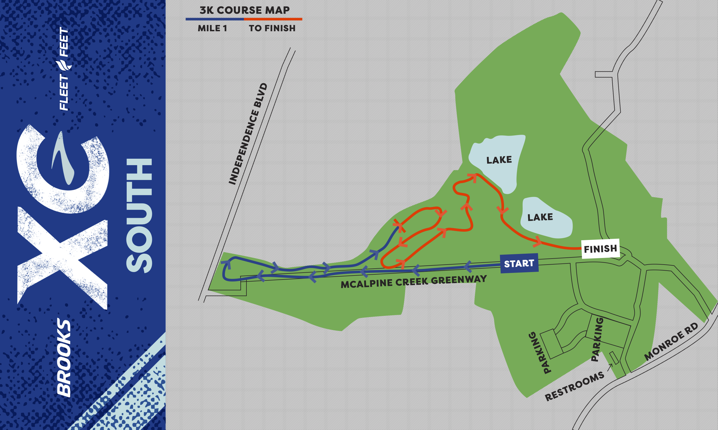McAlpine Creek Park is open daily from sun-up to sun-down. The cross country course is open during those hours. A course map is located on an information / way-finding sign near the Chris Hertel Stage. On Friday, event staff will be on-site until packet pickup closes to answer questions and direct you to the course if necessary.